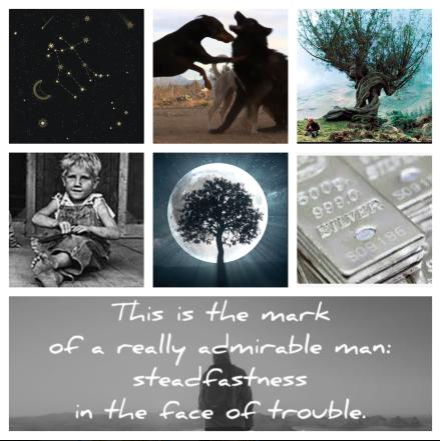 There the wolf stands, with eyes of gold. // The light still there, but dull and cold. // Boards splintering beneath shaking paws; // A beat of silence as the dog’s heart thaws // At the sight of his long-lost friend.